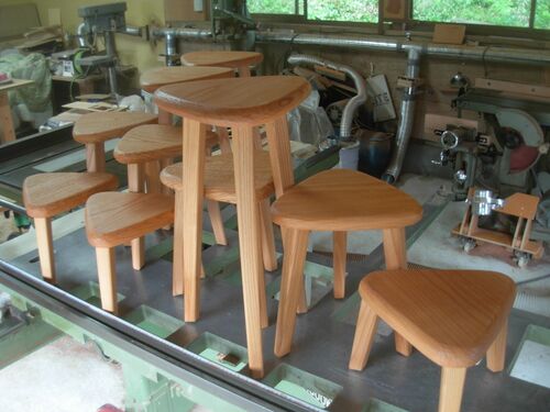 とりあえず、昨日の続きの欅の三角スツールの組み立て。 ・・・コンコンコン・・・ その後は、ずっと後まわしにしていた漆部屋に寝ていたものを取り出します・・・ 拭き漆をした三角スツール(と角小盆)です。 手で触ったらざらざらしていたんだよね…、まる…